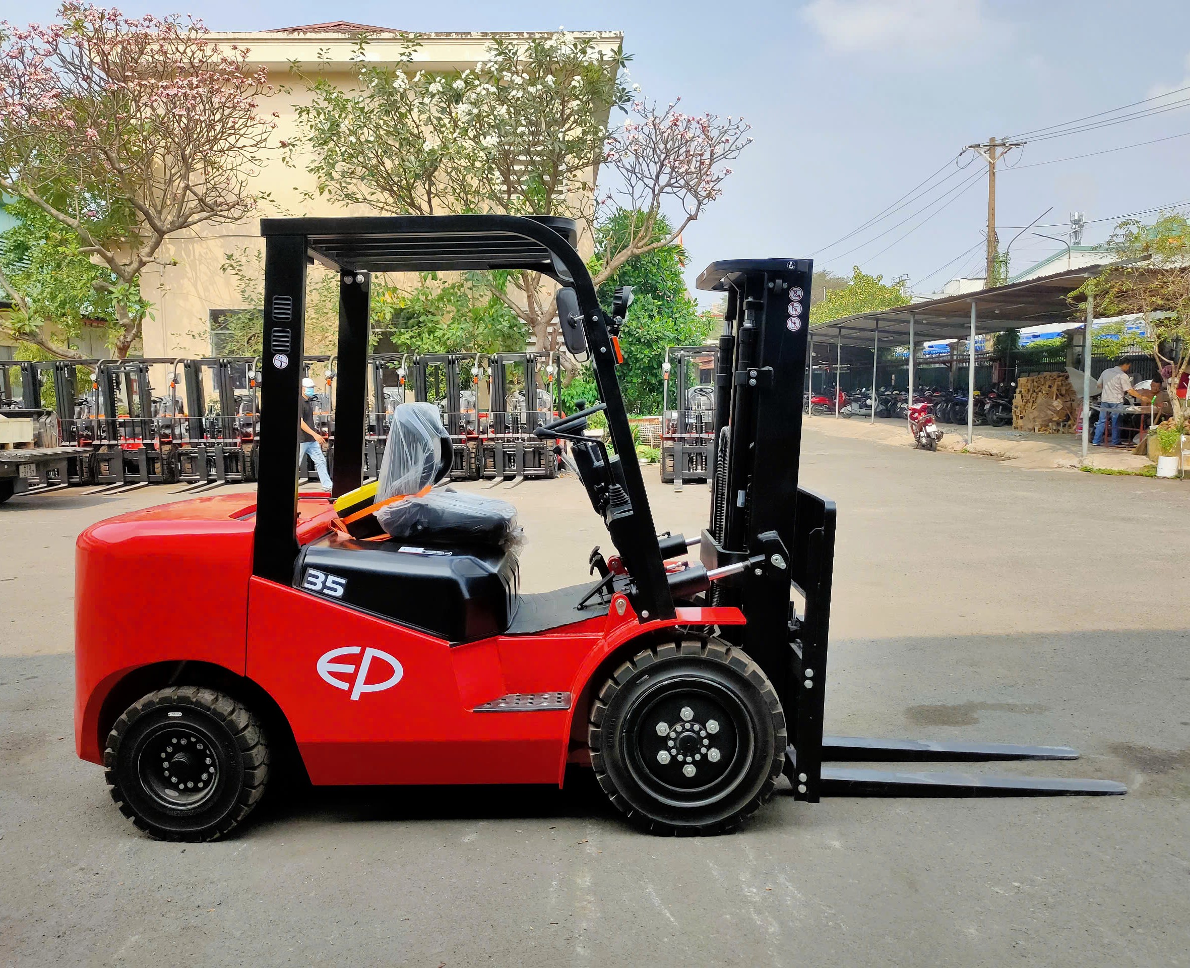 | Xe nâng dầu – Model: CPCD35H3 – Tải trọng: 3500kg – Tâm tải trọng: 500mm – Chiều cao nâng cao nhất: 3m – Khug nâng 2W3000 – Chiều dài càng nâng: 1220mmx – Động cơ XINCHAI A495BPG – Hệ thống bánh xe cao su đặc + 2 bánh lái + 2 bánh tải – Khung nâng ngã đổ tiêu chuẩn – Khung bảo vệ – Có vô lăng, cần gạt điều khiển – Có ghế ngồi lái – Xe mới. Hiệu: EP – Top 1 Trung Quốc (Đầy đủ bản sao CO/CQ và đăng kiểm) |